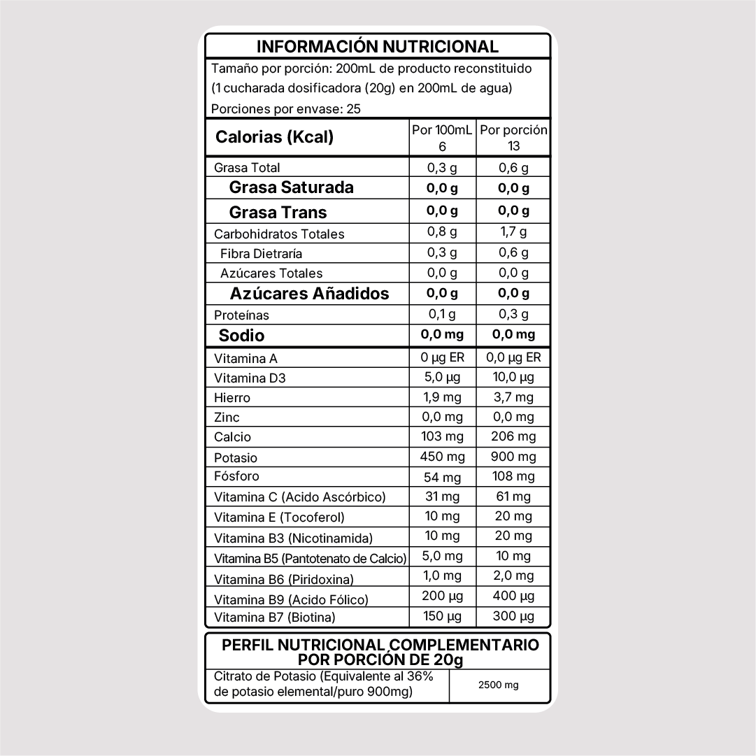 NH-CITK es una mezcla funcional en polvo que combina citrato de potasio, superfrutas antioxidantes y vitaminas esenciales para promover el equilibrio electrolítico, la hidratación celular y la energía sostenida. Con sabor natural a sandía, sin azúcar añadida ni sodio, es una fórmula limpia, eficaz y diseñada para el bienestar diario.